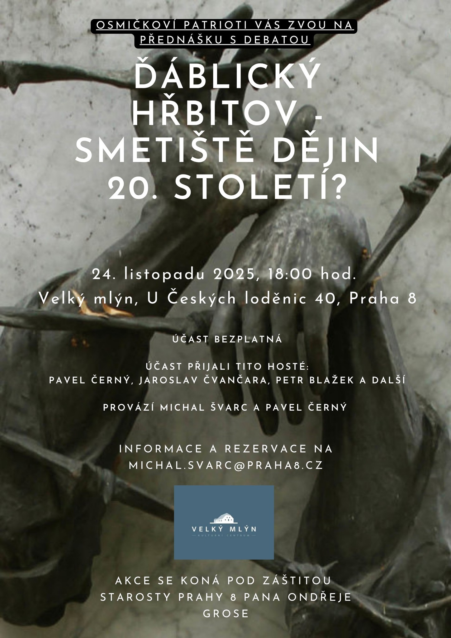 Velký mlýn na Praze 8 bude v pondělí 24. listopadu 2025 místem velice zajímavé debaty na téma uložení ostatků po hrdinech druhého a třetího odboje. Dojde tak po letech konečně k odčinění historické křivdy.